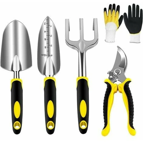 【Funzionale】 Questo set di attrezzi da giardino è composto da 5 pezzi, è perfetto per una varietà di attività come scavare, allentare, allentare il terreno, aerare, trapiantare e altro ancora. 【Alta qualità】 Le lame e le punte acuminate sono realizzati in solido alluminio lucidato, che sono lucidi, resistenti alla corrosione ed estremamente durevoli. Le maniglie sono realizzate in plastica ergonomica, riducendo i danni alle mani. 【Dimensioni adatte】: questi strumenti sono per lo più 30 cm-35 cm, adatti per piante da giardino e fiori in vaso. Facile da riporre: c’è un foro sulla parte superiore di ogni maniglia, molto comodo per la conservazione.【Ottimo regalo】: è un regalo perfetto per gli amanti del giardino.