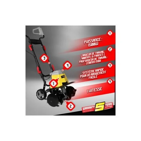 Gardeo GMTBE1506W – Motozappa elettrica 1500W, larghezza lavoro 40 cm. Garanzia 3 anni