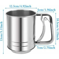 Lo zucchero a velo con setaccio è realizzato in acciaio inossidabile 430, materiali per uso di alta qualità, che possono garantire sicurezza alimentare. ciotola, pour la farina, tenere premuto r il manico e first la molla utilizzatore per rimuovere facilmente i grumi di farina. e può essere per farina, farina per dolci, farina di tapioca, farina di cocco, farina senza glutine, ecc. 12.5 cm