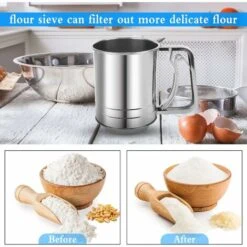 ? DISEGNO DELLO SCHERMO A DOPPIO STRATO: questo setaccio per portatile utilizza un design dello a doppio strato, che è molto sottile e può passare solo sullo schermo ultrafini. Può filtrare rapidamente le impurità della polvere, rendere la polvere chiara e uniforme, stendere la consistenza della farina e aumentare il contenuto dell’aria della farina. MATERIAL ALIMENTARI: Il nostro setaccio per farina per glassa è realizzato in acciaio inossidabile430, materiali di alta qualità per uso alimentare, cheguaranteescono la sicurezza. La superficie del setaccio per farina ha una mano è lucidata, che ha un’elevata durezza e resistenza alla corrosione, non è facile da deformare e ha una lunga durata. FUNZIONAMENTO CON UNA MANO: Il setaccio per farina in acciaio inossidabile adotta un’impugnatura ergonomica a molla di compressione, che è comoda da impugnare e può ridurre l’affaticamento della mano. Anche una mano può utilizzare facilmente il nostro setaccio per farina per filtrare le farine più delicate. SEMPLICE DA USARE: Il setaccio per pasticceria con manico è semplice e comodo da usare. Devi solo appoggiare il setaccio a faccia in giù sulla ciotola, versare la farina, tenere il manico e first la molla, puoi rimuovere facilmente i grumi di farina. AMPIA GAMMA DI APPLICAZIONI: il setaccio per farina con una sola mano è molto adatto per la cottura al forno e al forno, utilizzato per prodotti da forno più leggeri e aiuta a mescolare altri ingredienti in modo uniforme. Può essere utilizzato per farina, farina per dolci, farina di tapioca, farina di cocco, farina senza glutine, ecc. Con il nostro setaccio per farina, cucinare in casa diventa più facile.design del setaccio a doppio strato, che può filtrare rapidamente le impurità dell’inquinamento, stendere la consistenza della farina e aumentare il contenuto dell’aria della farina.< br> Funzionamento con una sola mano