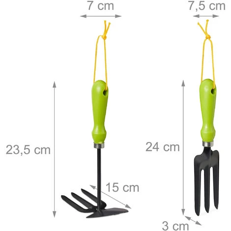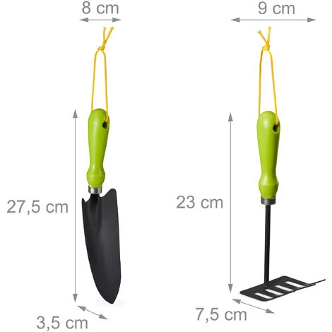 Grazie a questo set completo da 4 accessori per il giardino, avrete finalmente tutto il necessario per curare al meglio i vostri fiorii e le vostre piante. Per piantare usate la paletta- Il rastrello vi aiuterà a preparare il terreno in modo ideale per accogliere i vostri fiori, anche negli angoli più irraggiungibili. Per rendere il terreno più morbido, è presente nel set anche una zappetta, ideale per svolgere questo lavoro. E infine con il tridente potete rimuovere erbacce e altri oggetti indesiderati dal terreno, senza per questo dover spiantare tutto. Tutti gli attrezzi sono ergonomici e dotati di un cordoncino per appenderli.