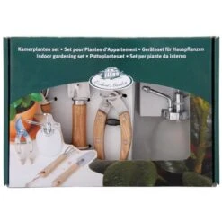 - Contiene uno spruzzino per piante, un paio di cesoie da potatura e una forca a mano