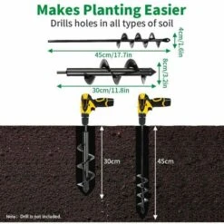 - Ampia applicazione: per piantare, piantine, alberi, arbusti, coltivazione profonda, miscelazione di calcestruzzo, terriccio, fossati di irrigazione e altro ancora. Questo trapano a terra rende anche facile scavare buche per i pali o addirittura portarlo in vacanza per praticare un buco nella sabbia per ancorare il tuo ombrellone, sarà un buon aiuto per te.